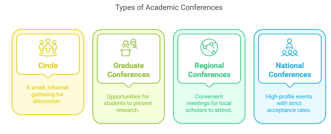 全國性會議通常是學術履歷含金量最高的,但錄取率也相對較低。我還沒有參加過美國的全國性會議,不過通常來說,全國性協會的會議會吸引研究生和專家共同參與,會議形式非常多元。例如,有 panel presentations(小組論文發表) 和 roundtable discussions(圓桌討論) 等不同形式,能夠讓參與者進行深入交流和討論。