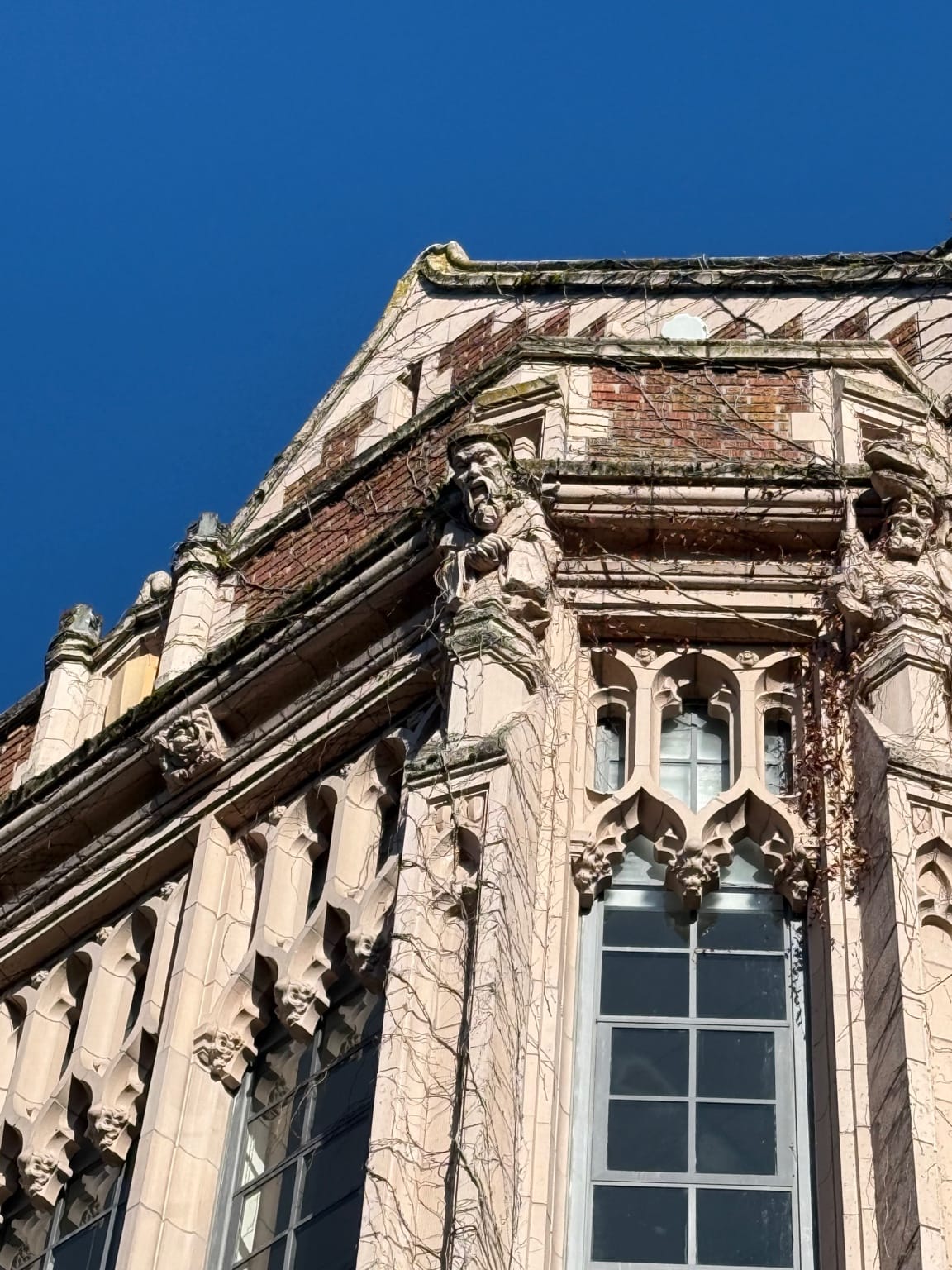 學校裡有一棟哥德式的建築,上面竟然有一尊老子的雕像 (而且不知為何看起來有點嚴肅)。在一整排西方神祇與人物之間,這樣的東方面孔反而顯得格外醒目。